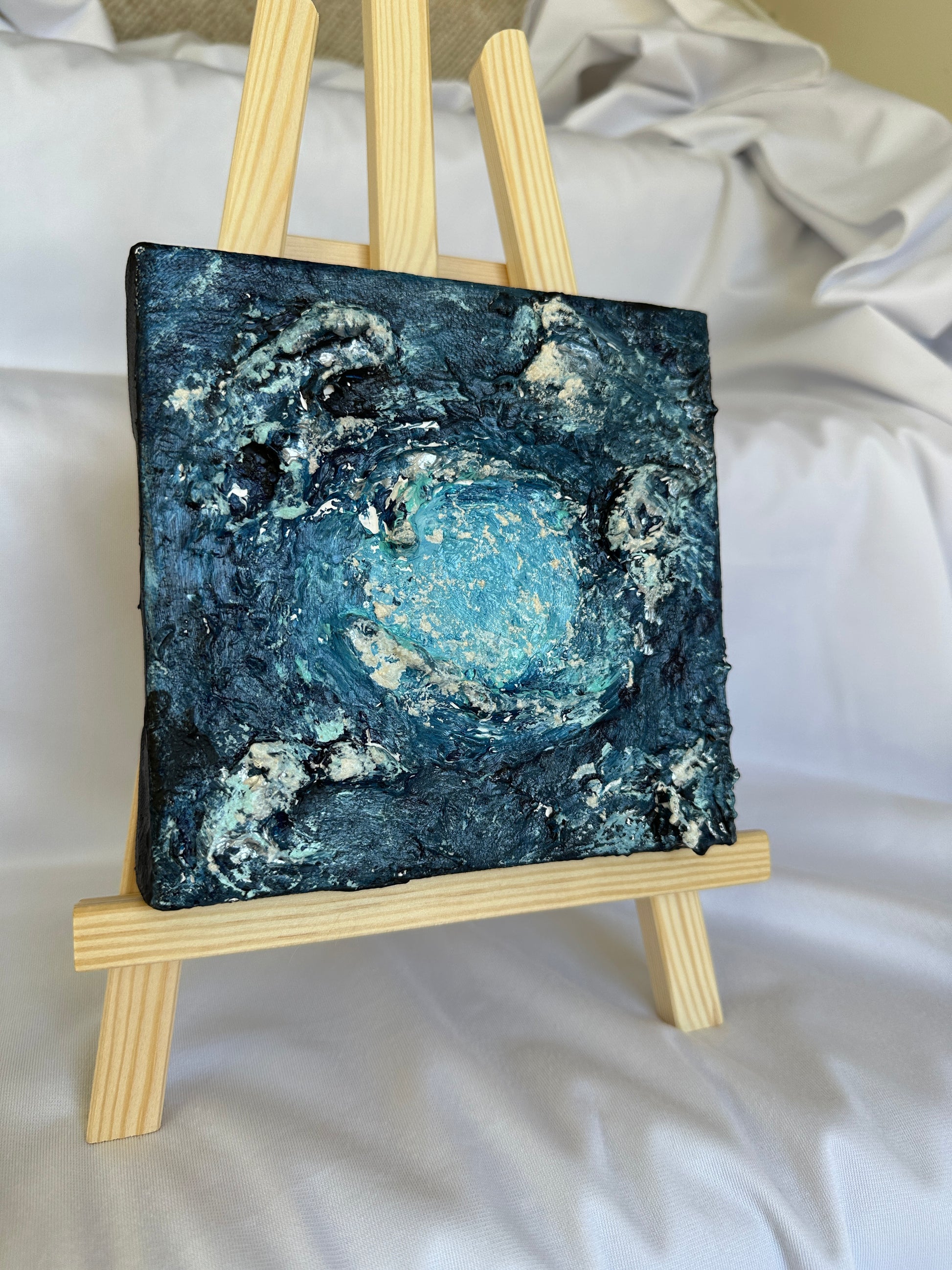 Maelstrom is a 6x6 textured abstract ocean painting inspired by the churning waters of The Maelstrom in World of Warcraft. Built with layered acrylic and intentional movement, this piece captures the tension and rotation of a sea that refuses to be still.