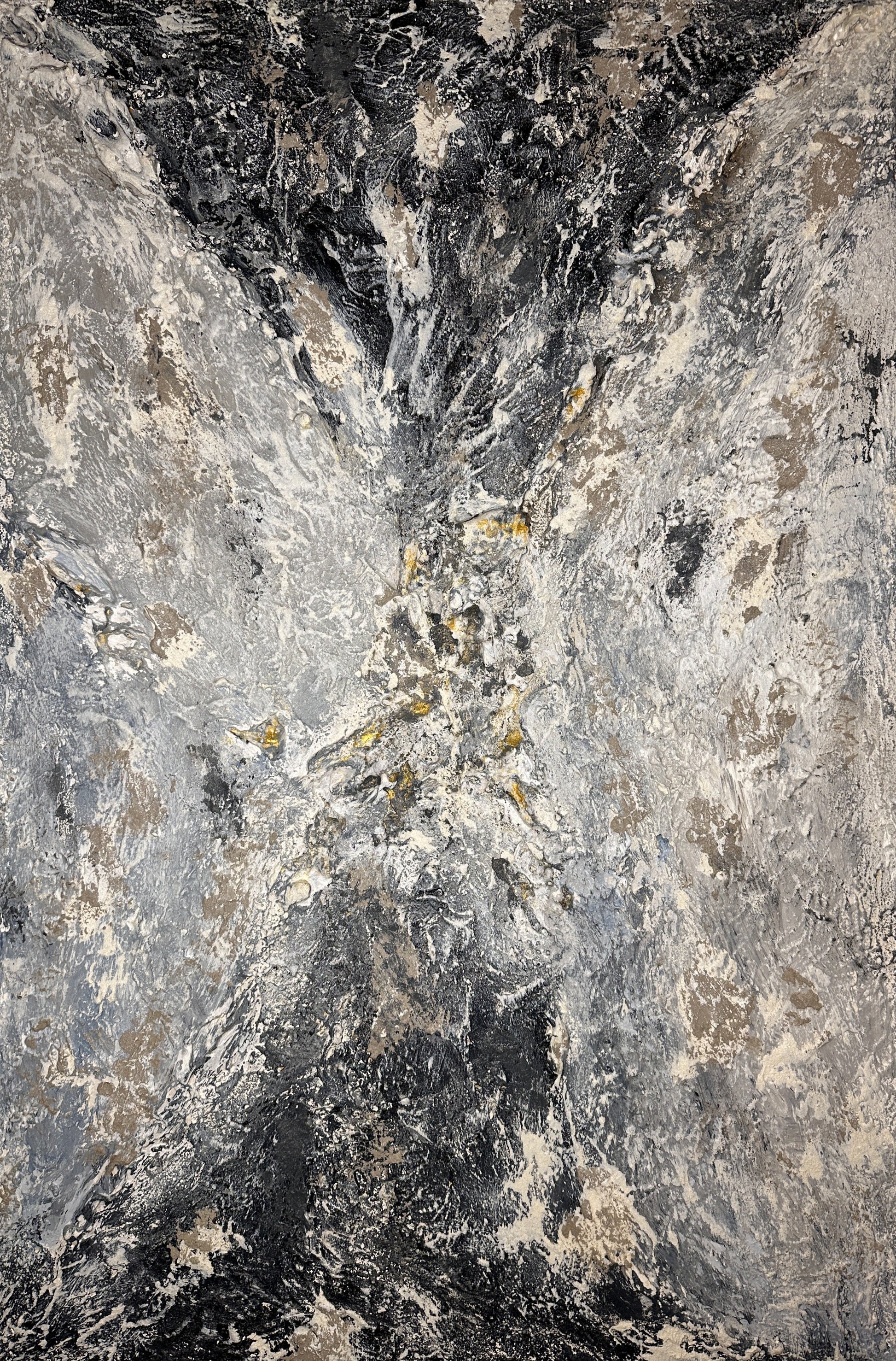 Mountain is a 36x24 textured abstract landscape painting inspired by the quartz-filled mountains of Vermont. Built with layered sand and dimensional acrylic, this piece captures the raw, mineral-rich beauty of elevated terrain shaped by time and pressure.